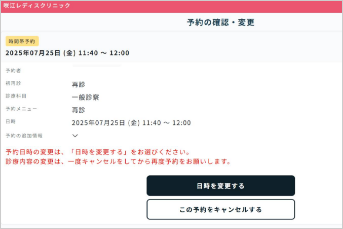 図のように予約内容が表示されます。(変更・キャンセルも可能)