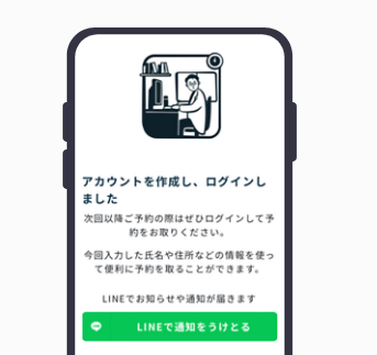 (※予約時にメールアドレスの入力がない場合はこの画面が出てこないです。再度入力して登録画面を出したい場合は、メールアドレス入力をしなかった媒体とは違う媒体から再度予約を取ってください)